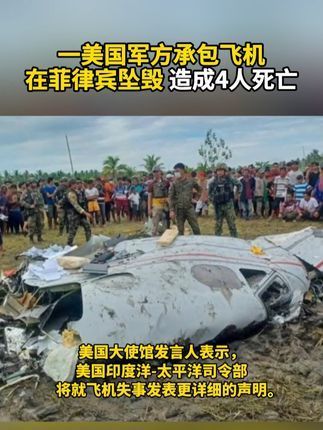 > 一美国军方承包飞机在菲律宾坠毁,造成4人死亡